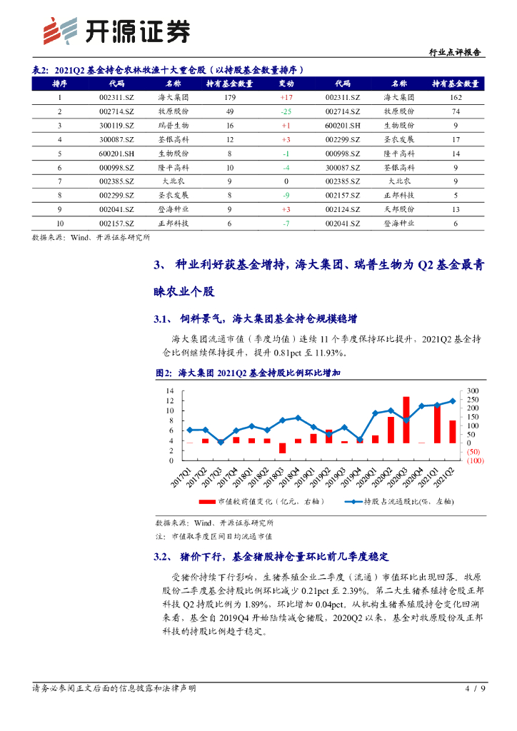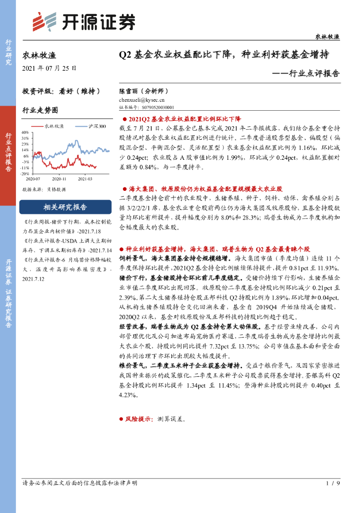 开源证券:农林牧渔行业点评报告:Q2基金农业权益配比下降,种业利好获基金增持.pdf