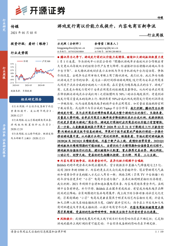 开源证券:传媒行业周报:游戏发行商议价能力或提升,内容电商百舸争流.pdf