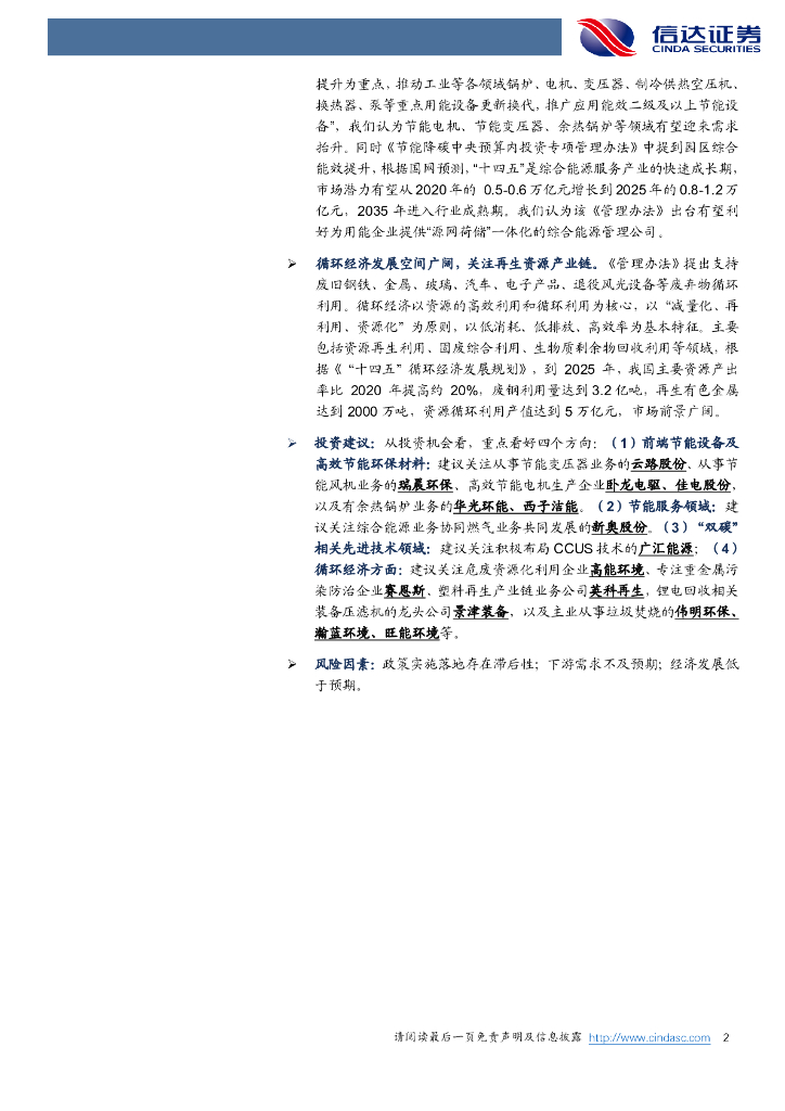 信达证券:节能降碳资金支持力度再加强,关注节能设备与循环经济产业链.pdf