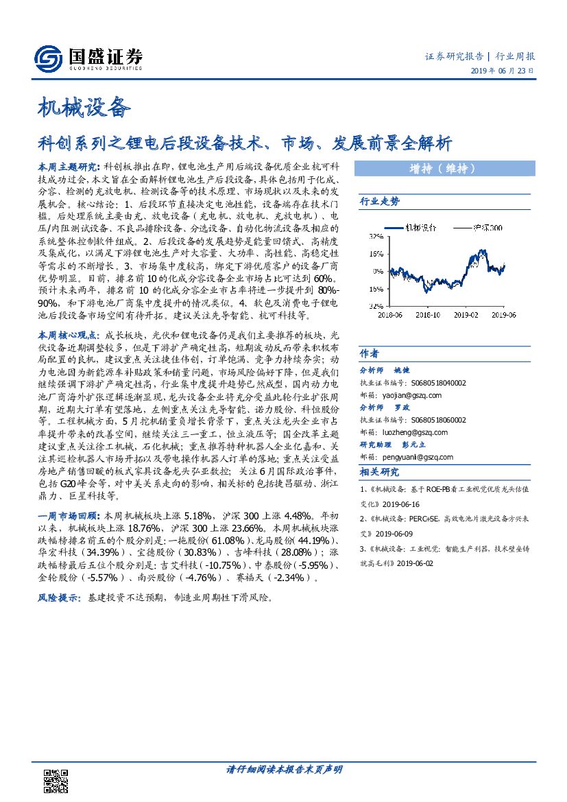国盛证券:机械设备行业周报:科创系列之锂电后段设备技术、市场、发展前景全解析.pdf