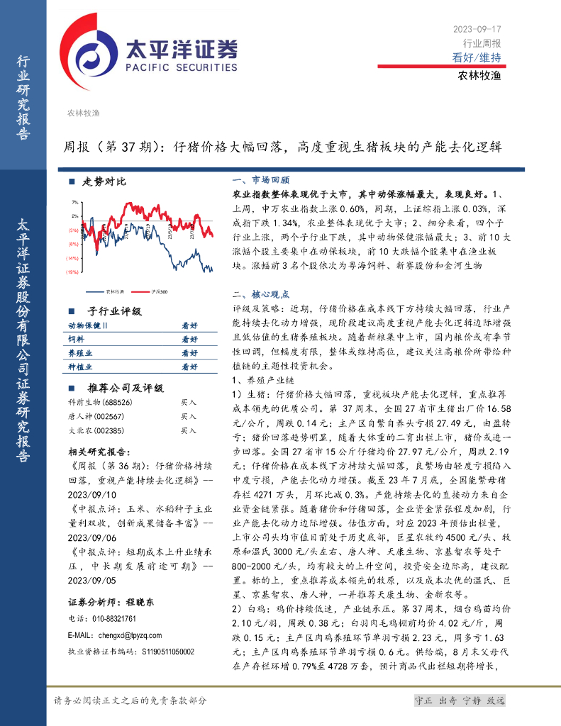 太平洋证券:农林牧渔周报(第37期):仔猪价格大幅回落,高度重视生猪板块的产能去化逻辑.pdf