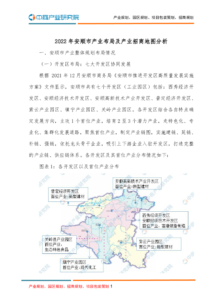 中商产业研究院:2022年安顺市产业布局及产业招商地图分析.pdf