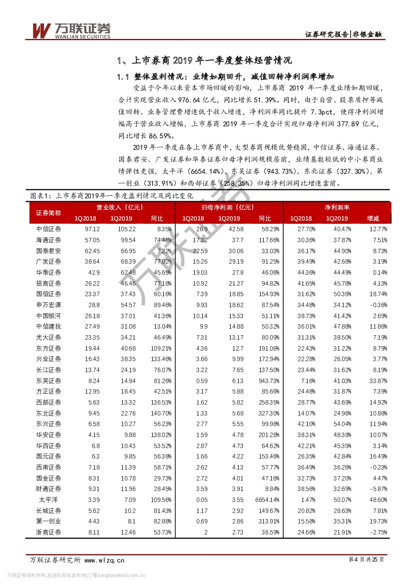 万联证券:上市券商2019年一季报综述:业绩如期回升,自营贡献五成收入.pdf
