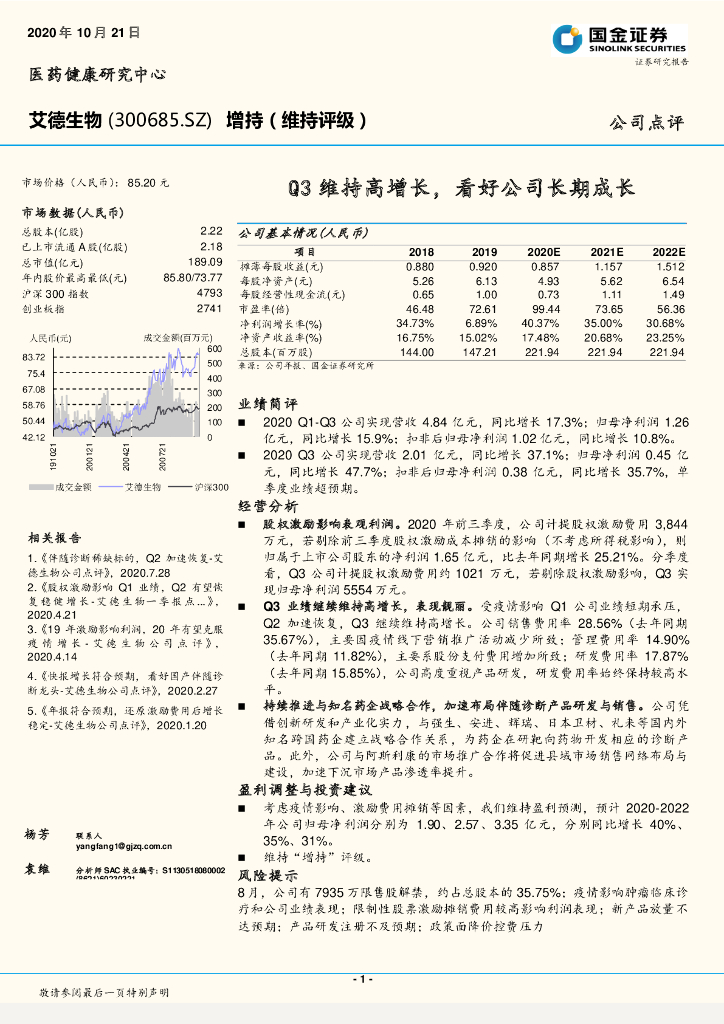 国金证券:艾德生物(300685)-Q3维持高增长,看好公司长期成长.pdf