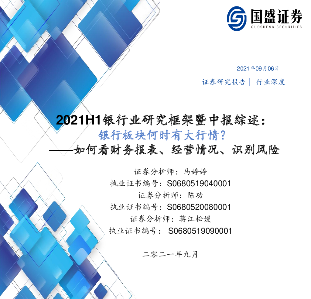 国盛证券:行业深度:2021H1银行业研究框架暨中报综述:银行板块何时有大行情?——如何看财务报表、经营情况、识别风险.pdf