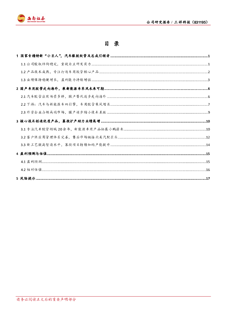 西南证券:三祥科技(831195)-募投拓开新能源汽配,车用胶管领域“小巨人”.pdf