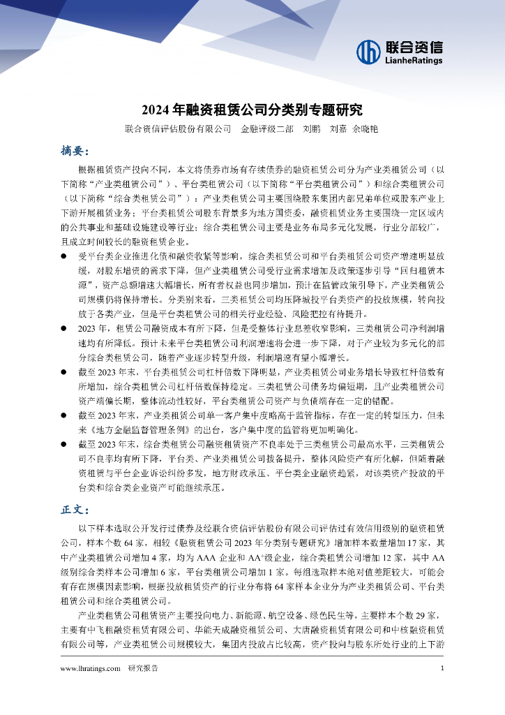 联合资信:2024年融资租赁公司分类别专题研究报告.pdf