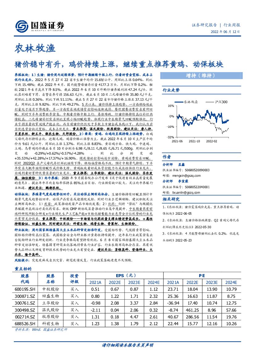 国盛证券:农林牧渔行业周报:猪价稳中有升,鸡价持续上涨,继续重点推荐黄鸡、动保板块.pdf