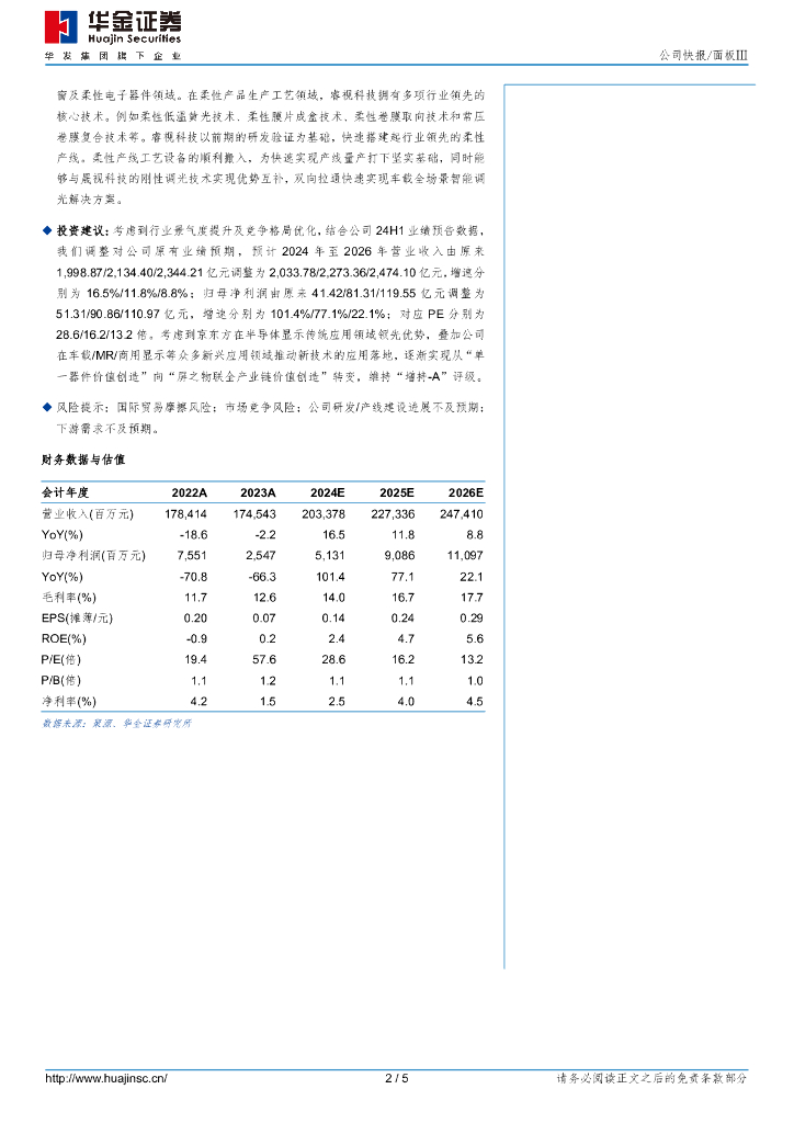 华金证券:京东方A(000725)-预计24H1归母净利润高增,拓展OLED聚焦高端中尺寸产品.pdf