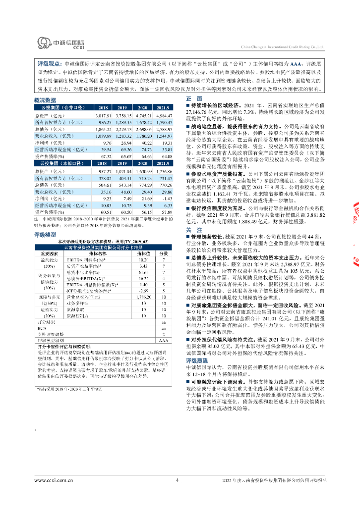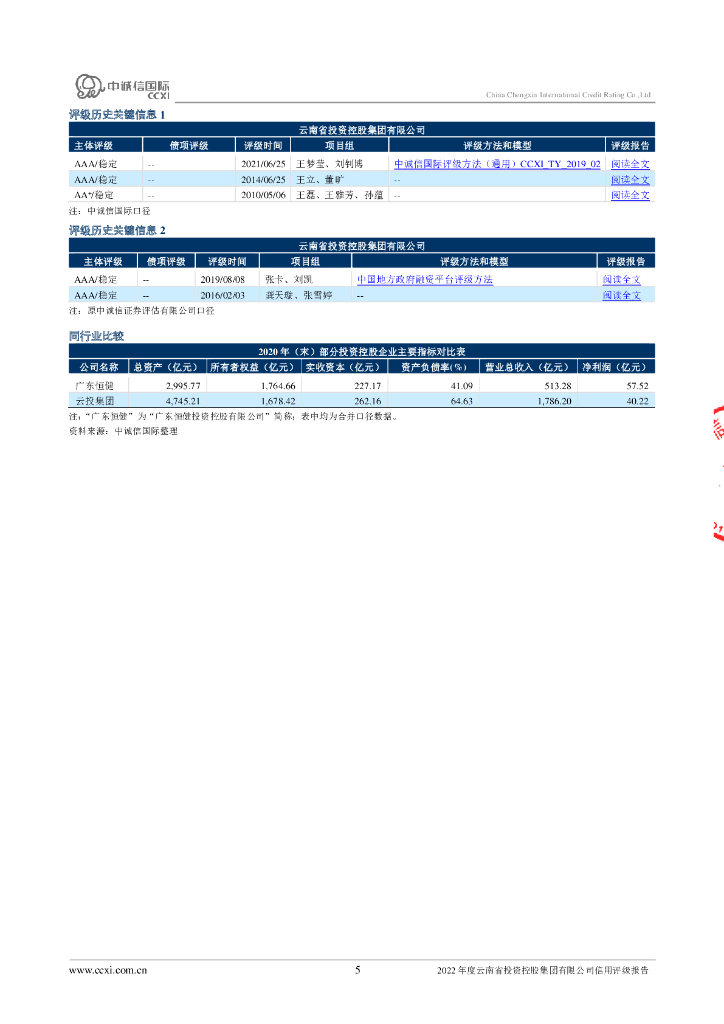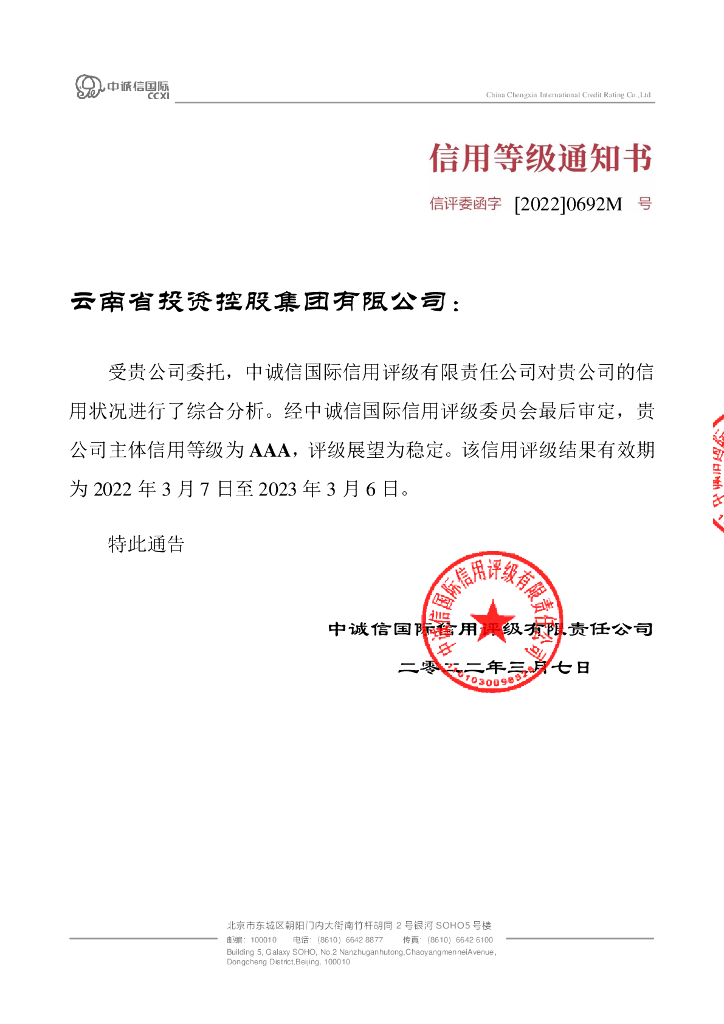 中诚信:2022年度云南省投资控股集团有限公司信用评级报告.pdf