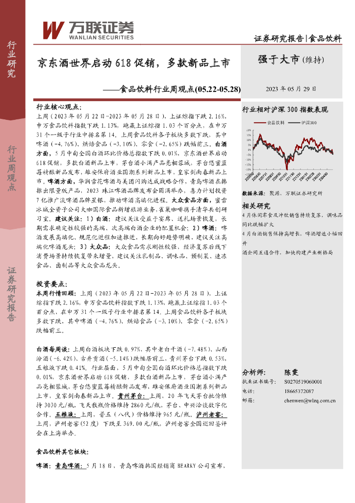 万联证券:食品饮料行业周观点:京东酒世界启动618促销,多款新品上市.pdf