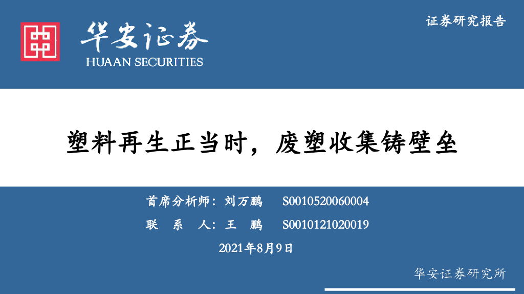 华安证券:化工:塑料再生正当时,废塑收集铸壁垒.pdf