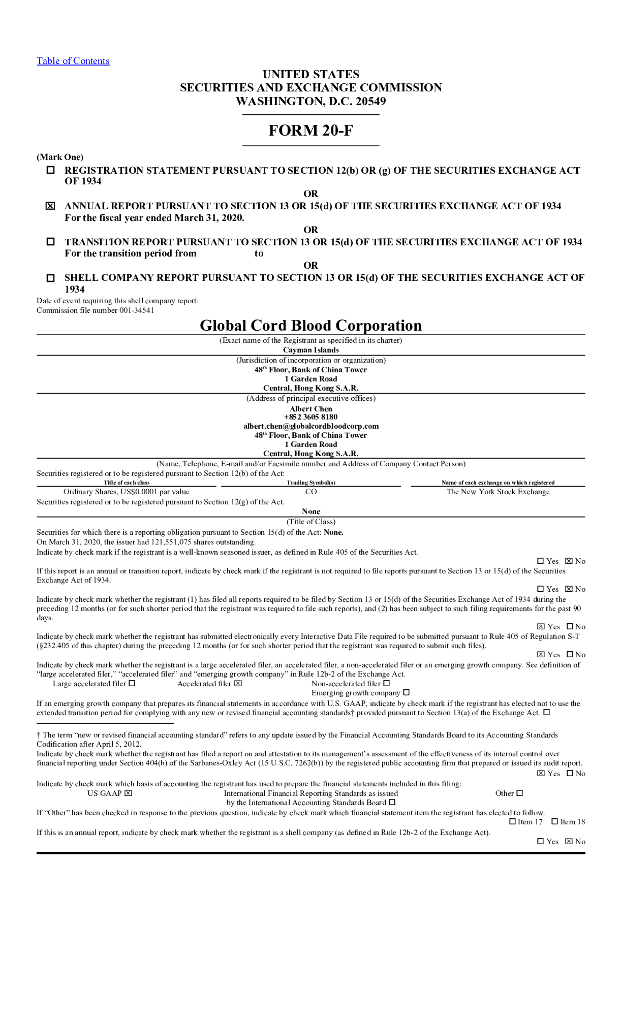 Global Cord Blood Corporation(CO)2020财年年度报告(英文版).pdf
