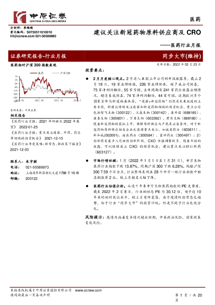 中原证券:医药行业月报:建议关注新冠药物原料供应商及CRO.pdf