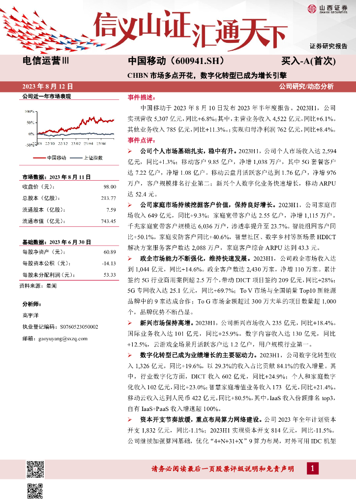 山西证券:中国移动(600941)-CHBN市场多点开花,数字化转型已成为增长引擎.pdf