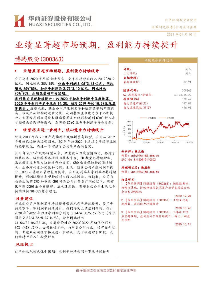 华西证券:博腾股份(300363)-业绩显著超市场预期,盈利能力持续提升.pdf