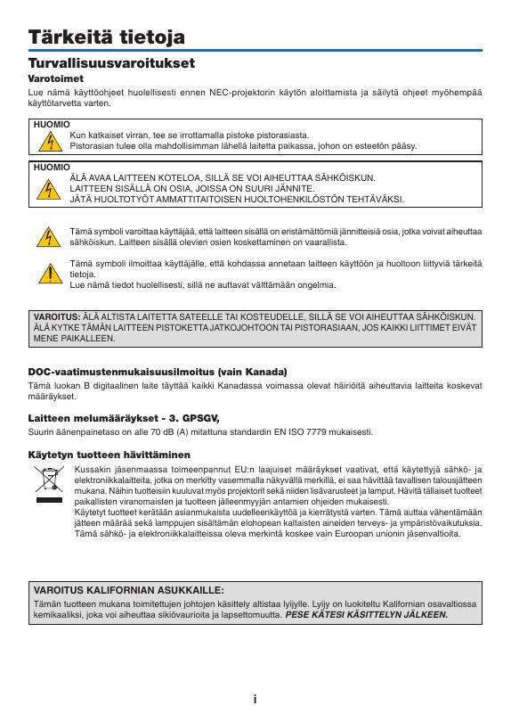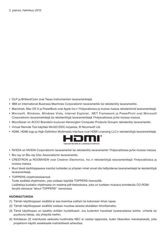 NEC V300X/V260X/V230X/V260/V230/V300W/V260W 投影仪 使用手册(3).pdf