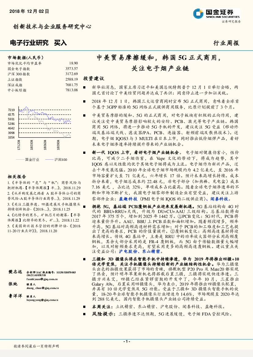 国金证券:电子行业研究周报:中美贸易摩擦缓和,韩国5G正式商用,关注电子烟产业链.pdf
