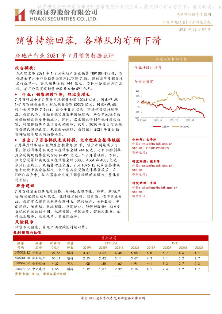 华西证券:房地产行业2021年7月销售数据点评:销售持续回落,各梯队均有所下滑.pdf