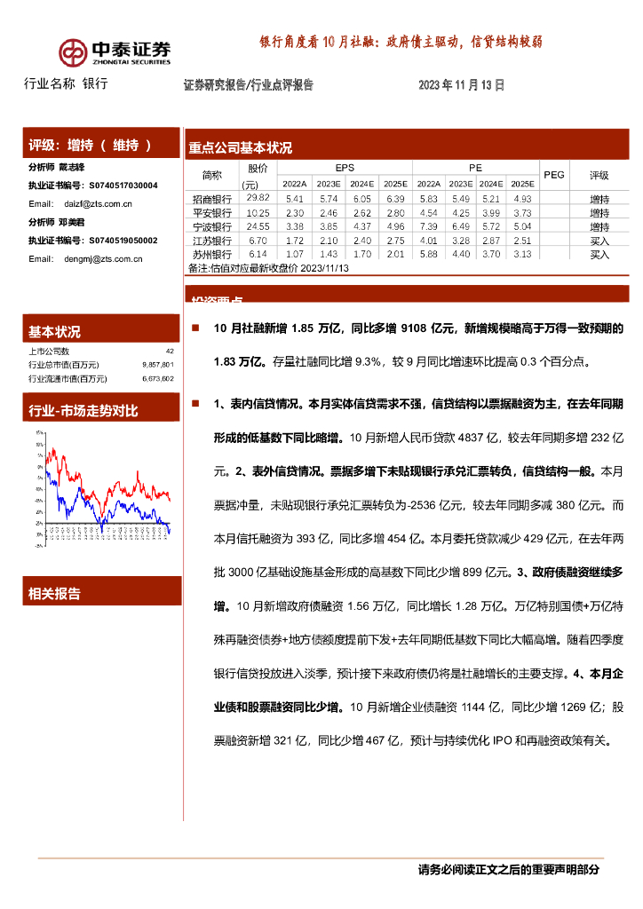 中泰证券:银行角度看10月社融:政府债主驱动,信贷结构较弱.pdf