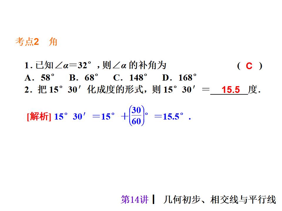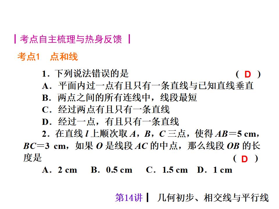 中考复习课件【第14讲】几何初步、相交线与平行线(33页)课件.ppt