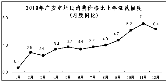 2010年广安市居民各类消费价格比上年涨跌幅度