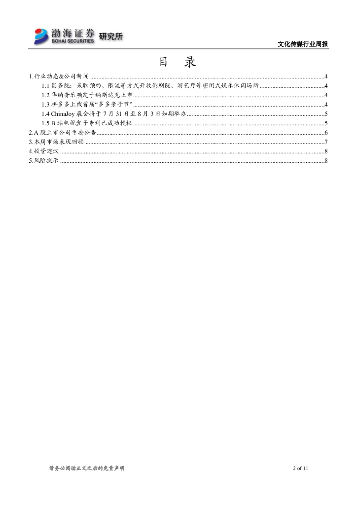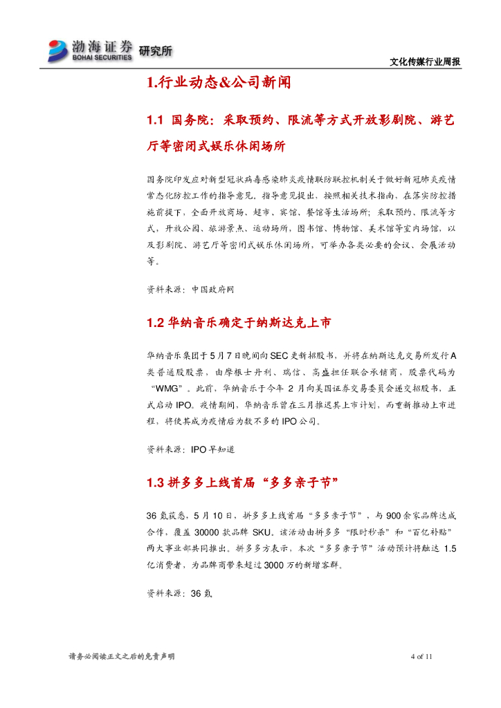 渤海证券:文化传媒行业周报:行情相对平淡,继续关注线上概念和复工复产.pdf