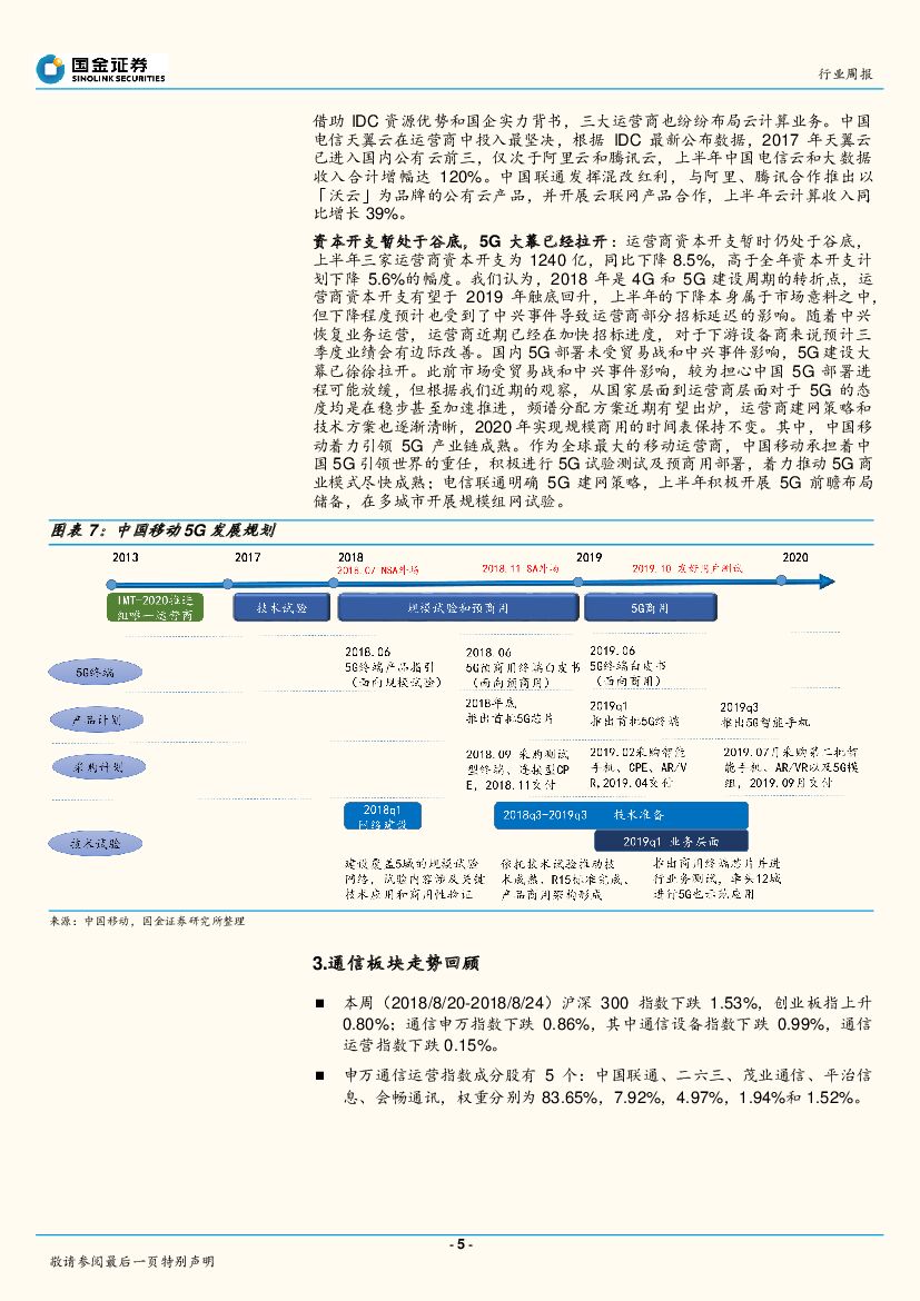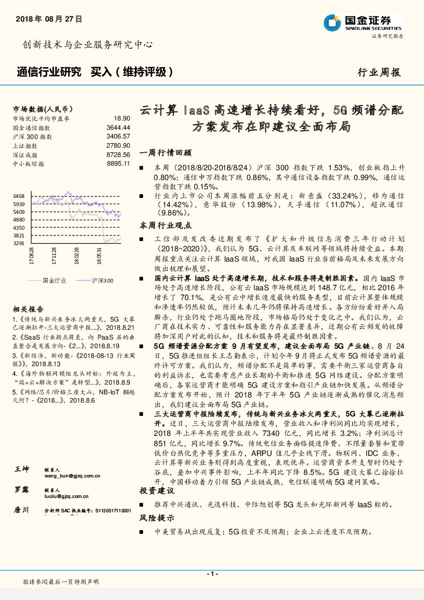 国金证券:通信行业周报:云计算IaaS高速增长持续看好,5G频谱分配方案发布在即建议全面布局.pdf