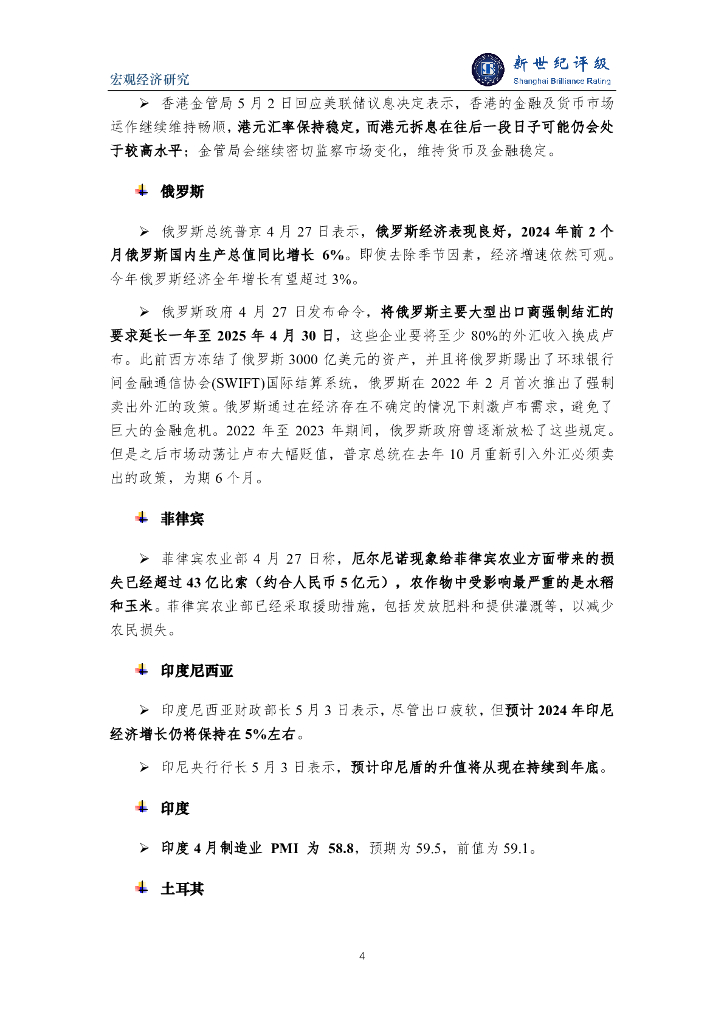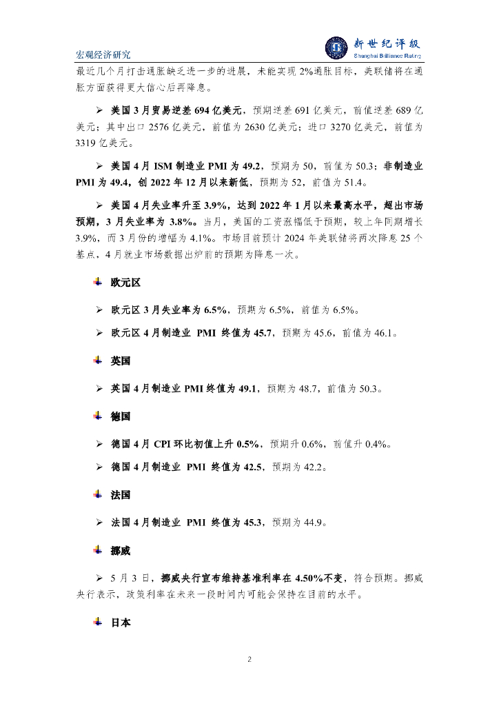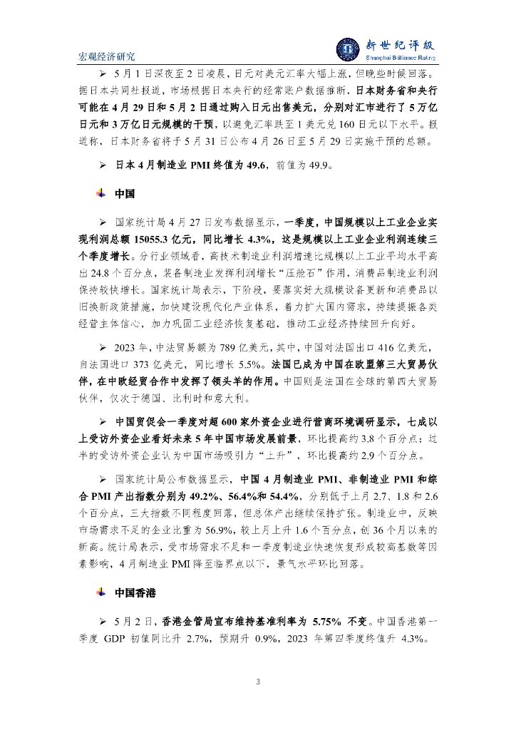 新世纪评级:美联储维持利率不变 中国规模以上工业企业利润连续增长——全球宏观经济周报(2024/4/27-5/3).pdf