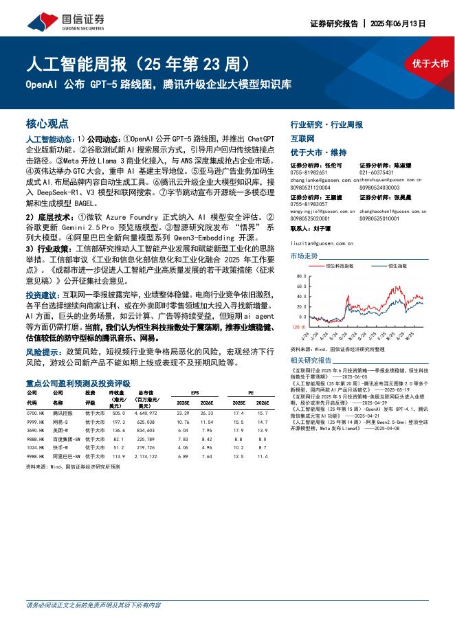 国信证券:人工智能行业周报(25年第23周):OpenAI公布GPT-5路线图,腾讯升级企业大模型知识库.pdf