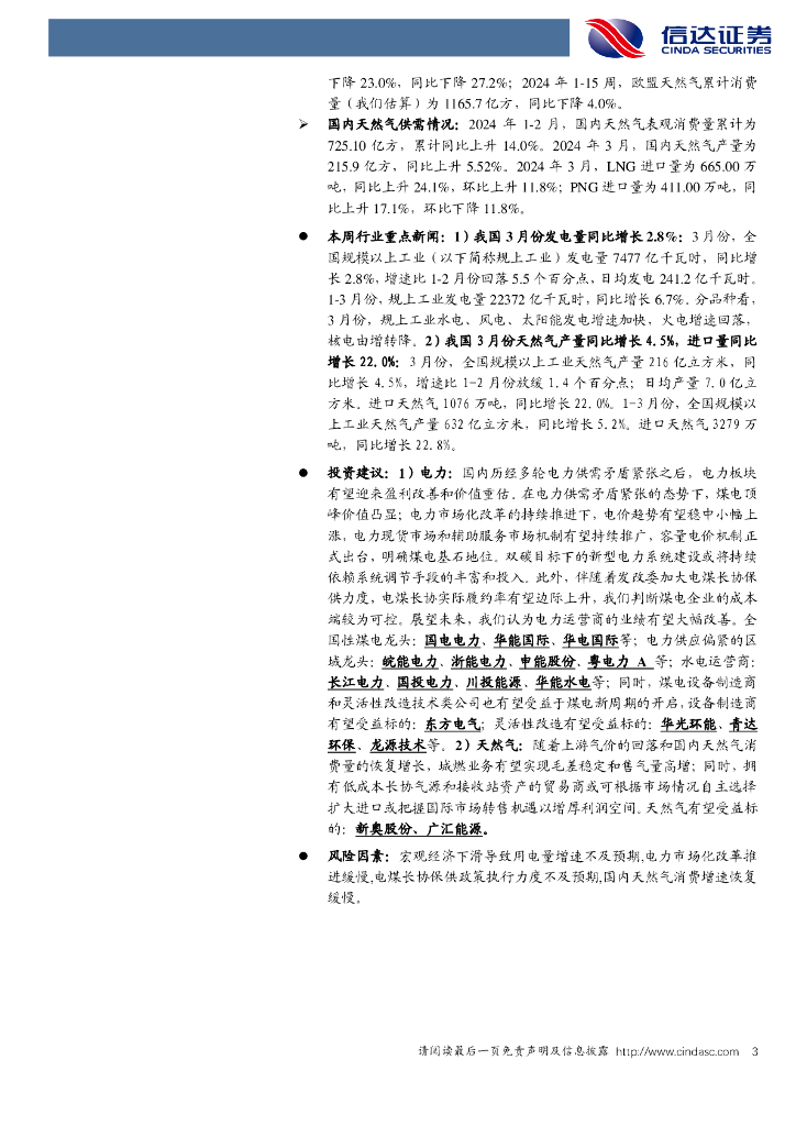 信达证券:公用事业—电力天然气周报:港口动力煤价逐步企稳,3月我国天然气进口量同比增长22%.pdf