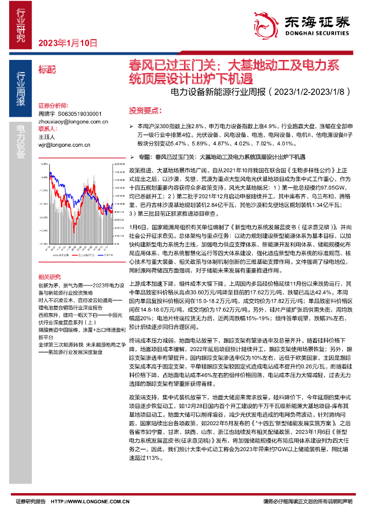 东海证券:电力设备新能源行业周报:春风已过玉门关:大基地动工及电力系统顶层设计出炉下机遇.pdf