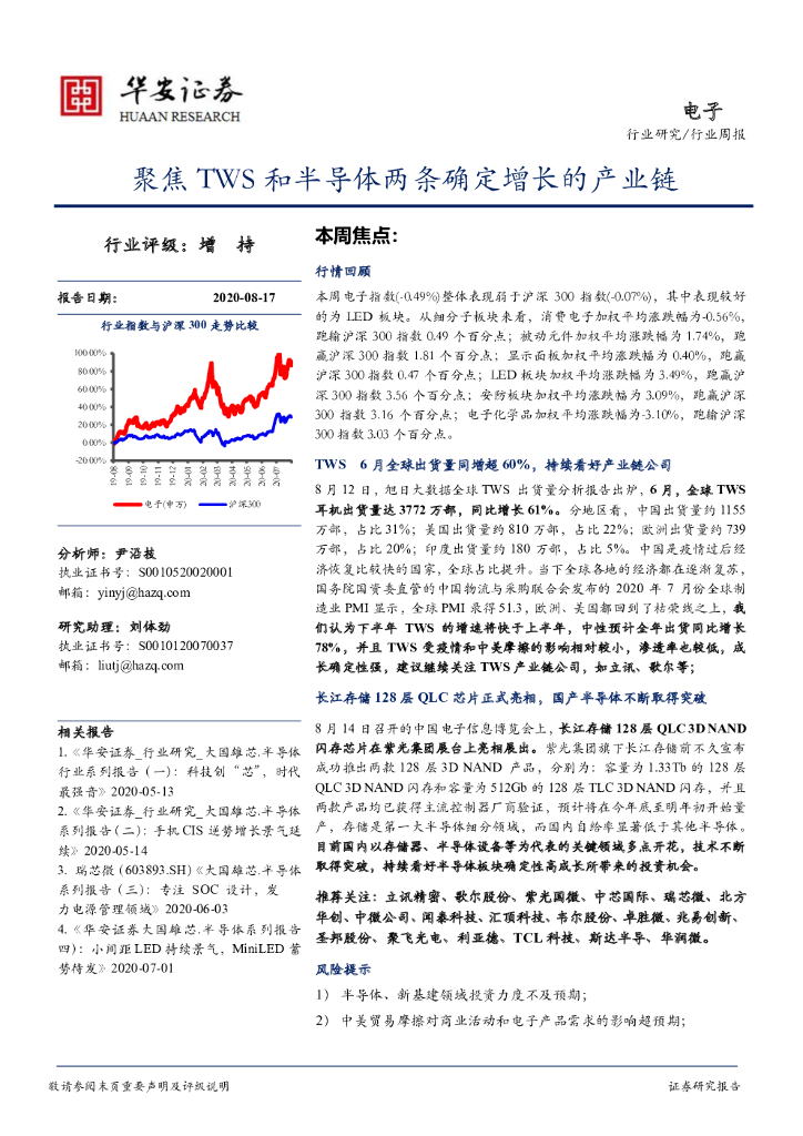 华安证券:电子行业周报:聚焦TWS和半导体两条确定增长的产业链.pdf