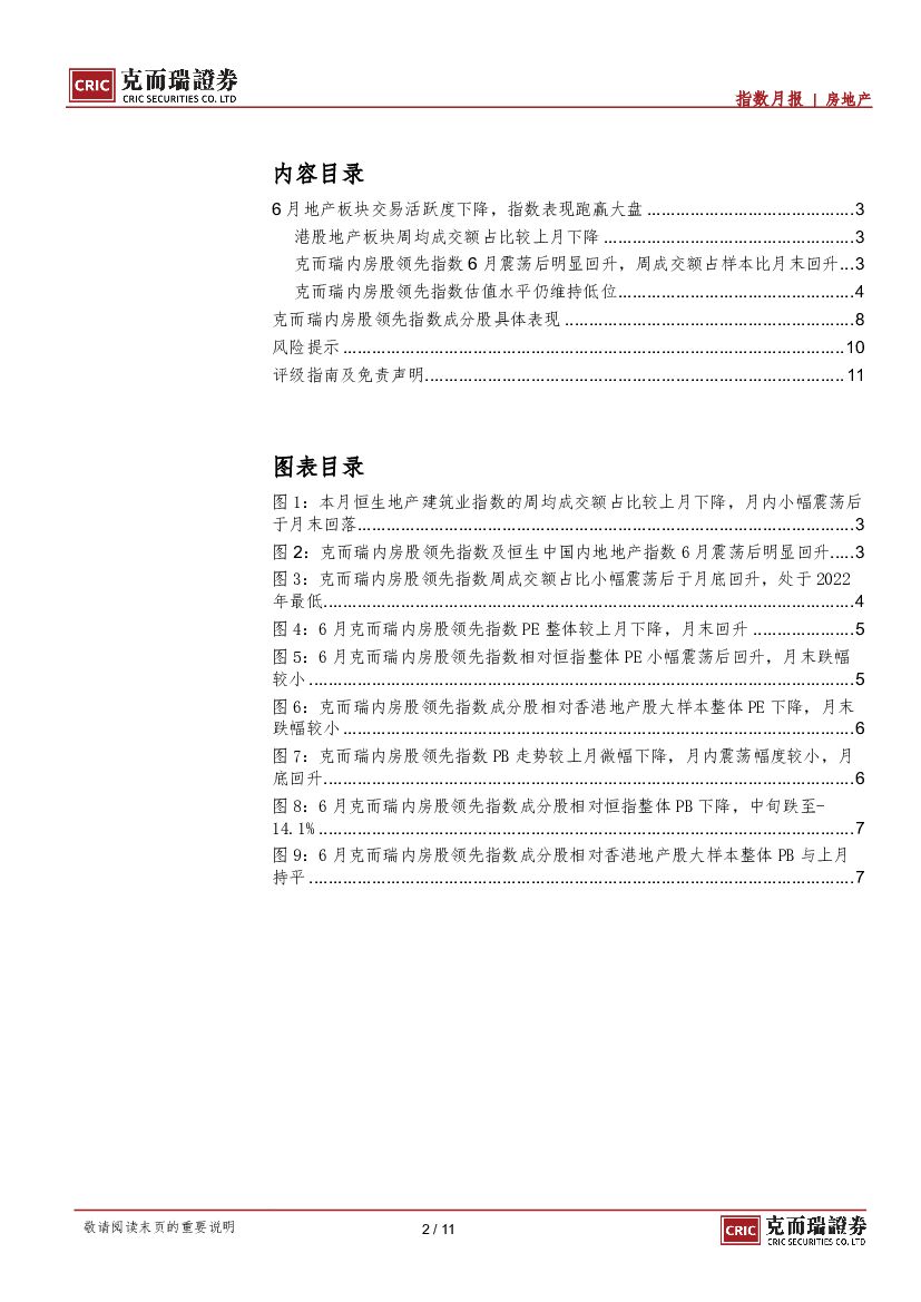 克而瑞证券:克而瑞内房股领先指数6月监测:6月半数成分股上涨,指数表现好于大盘.pdf