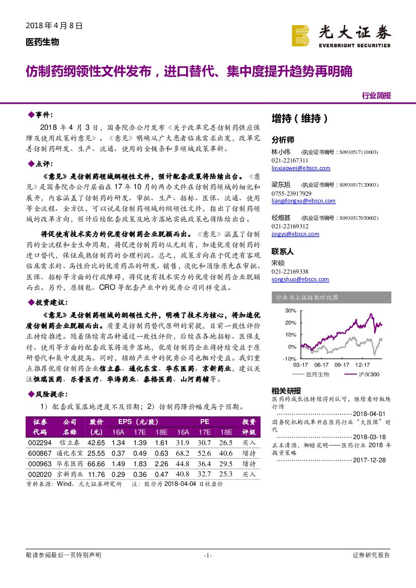 光大证券:医药生物行业简报:仿制药纲领性文件发布,进口替代、集中度提升趋势再明确.pdf