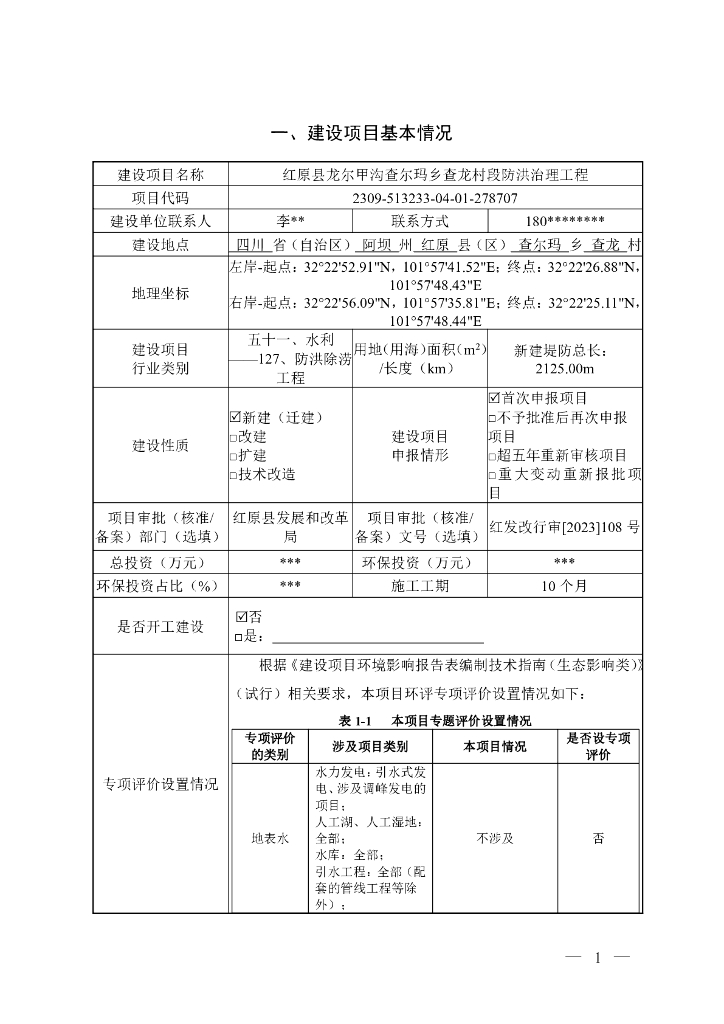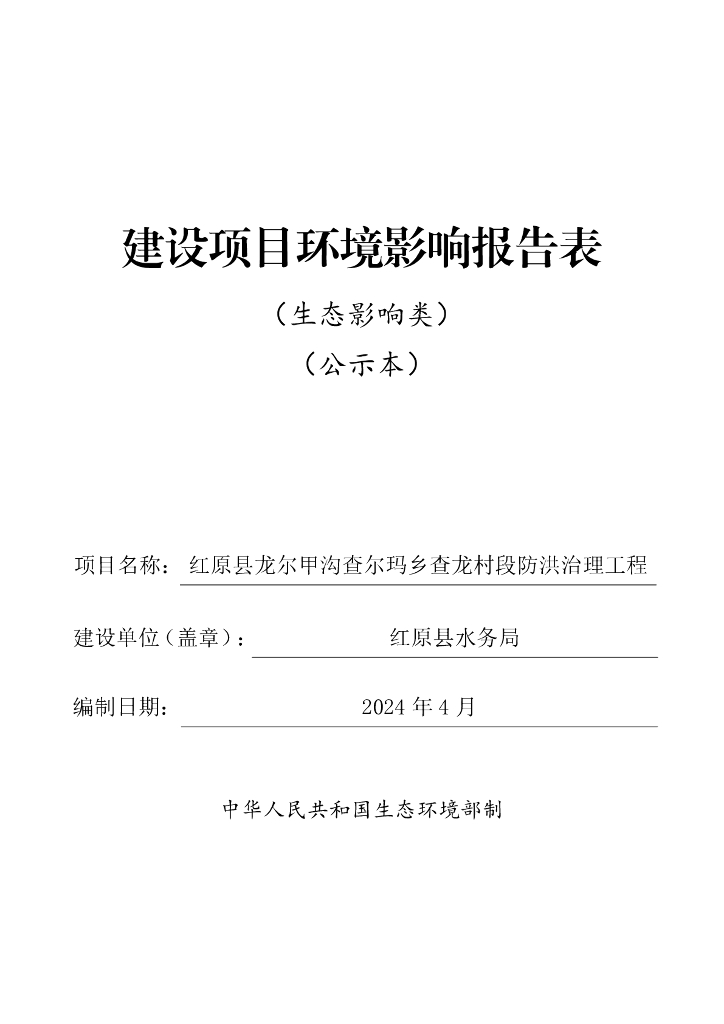 红原县龙尔甲沟查尔玛乡查龙村段防洪治理工程建设项目环境影响报告表(生态影响类)(公示本).pdf