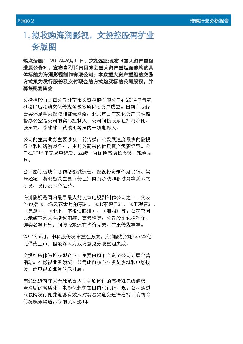 首创证券:文化传媒行业周报:拟收购海润影视,文投控股再扩业务版图.pdf