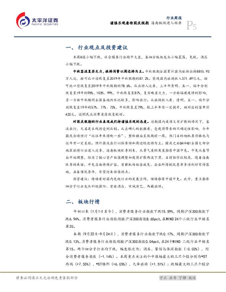 太平洋证券:消费行业周报:谨慎乐观看待国庆假期 海南板块进入旺季.pdf