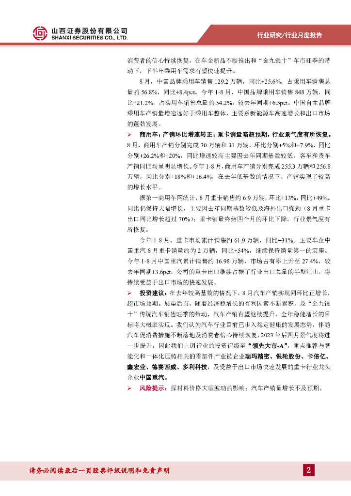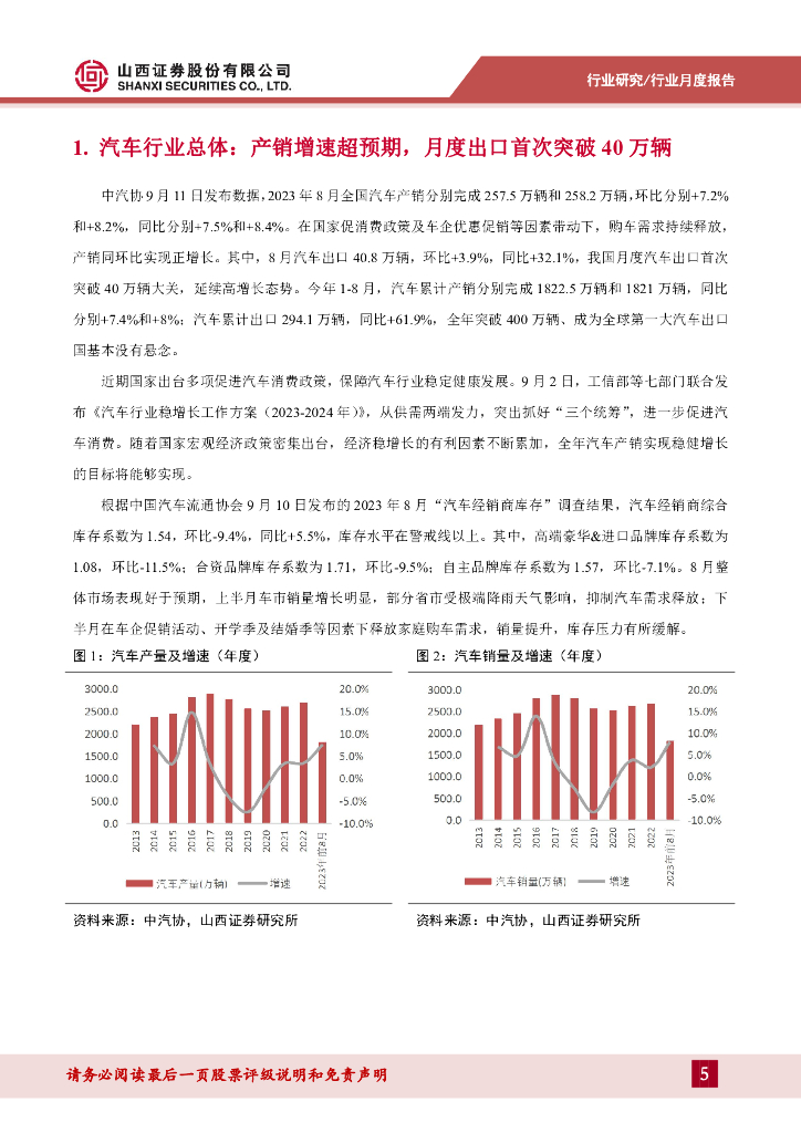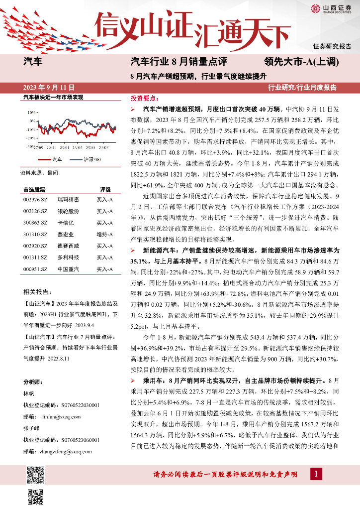 山西证券:汽车行业8月销量点评:8月汽车产销超预期,行业景气度继续提升.pdf