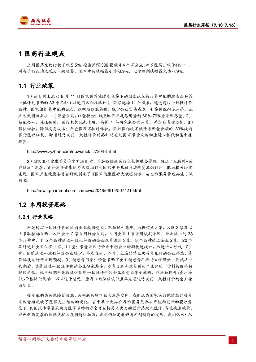 西南证券:医药行业周报:对带量采购不必悲观,看好行业集中度提升.pdf