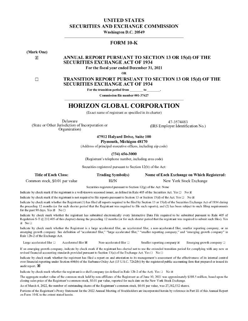 Horizon Global Corporation(HZN)2021财年年度报告(英文版).pdf