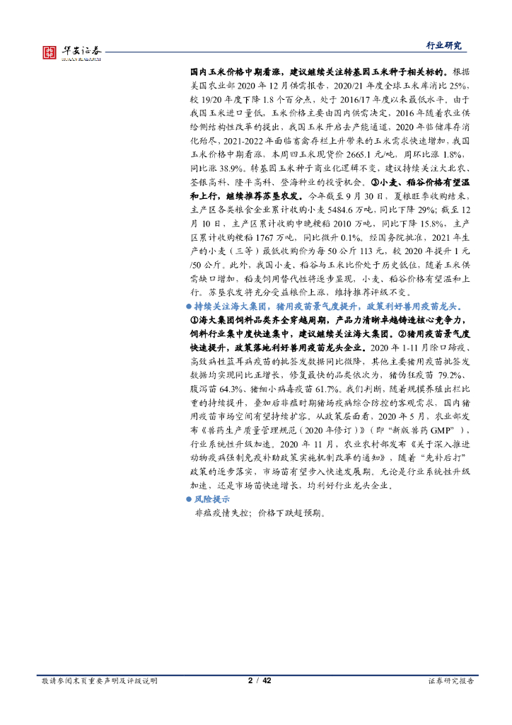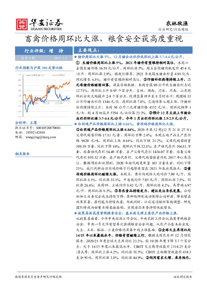 华安证券:农林牧渔行业周报:畜禽价格周环比大涨,粮食安全获高度重视.pdf
