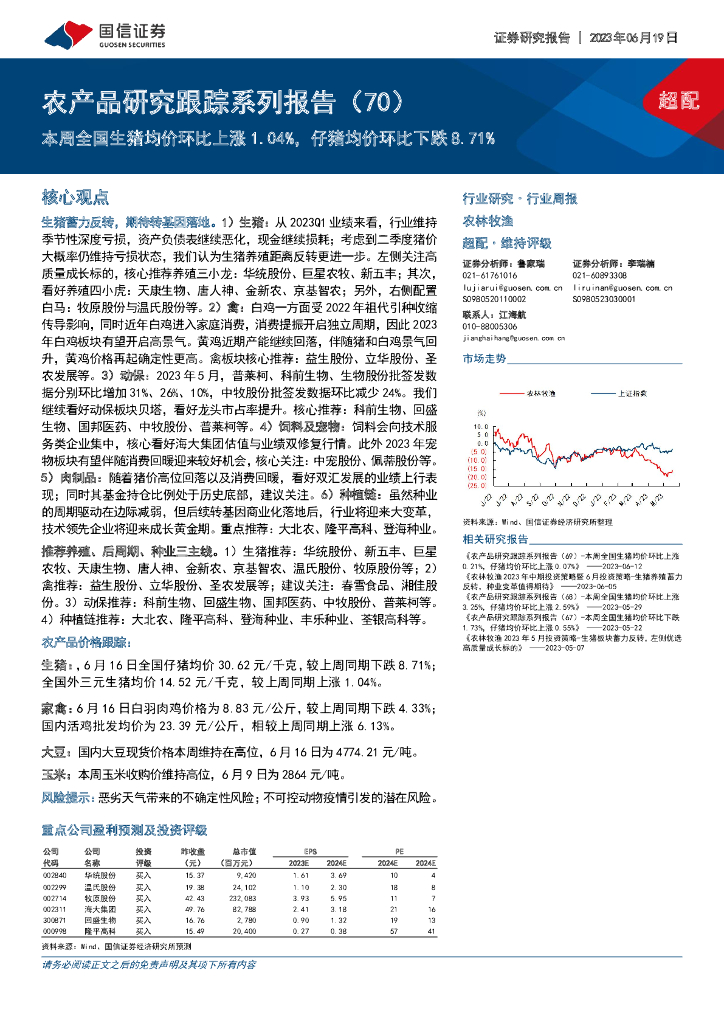 国信证券:农产品研究跟踪系列报告(70):本周全国生猪均价环比上涨1.04%,仔猪均价环比下跌8.71%.pdf