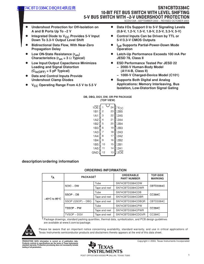 TEXAS INSTRUMENTS SN74CBTD3384C 数据手册.pdf