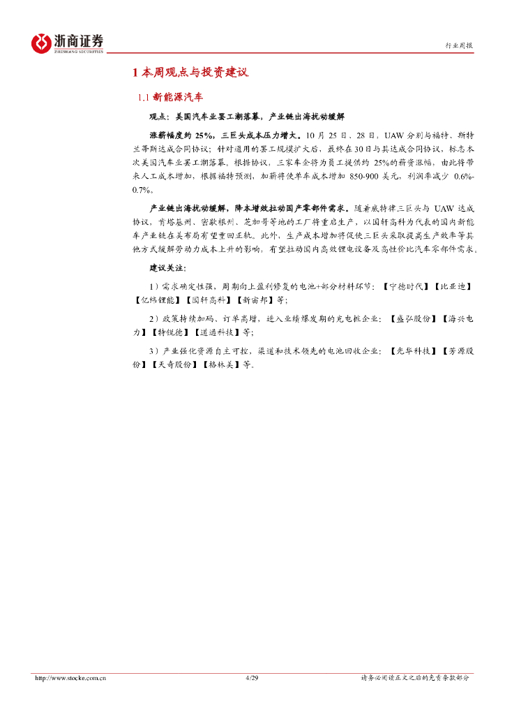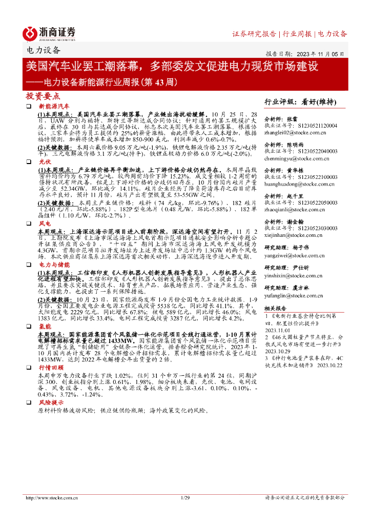浙商证券:电力设备新能源行业周报(第43周):美国汽车业罢工潮落幕,多部委发文促进电力现货市场建设.pdf