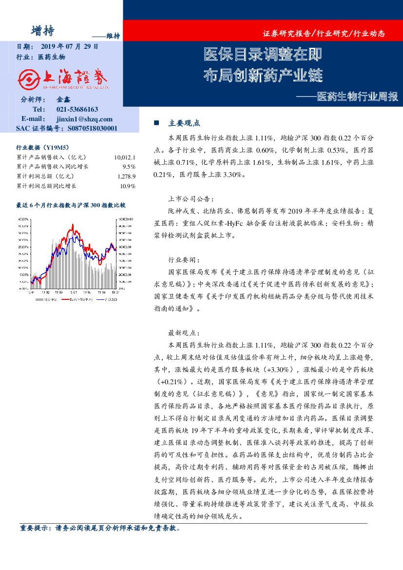 上海证券:医药生物行业周报:医保目录调整在即 布局创新药产业链.pdf