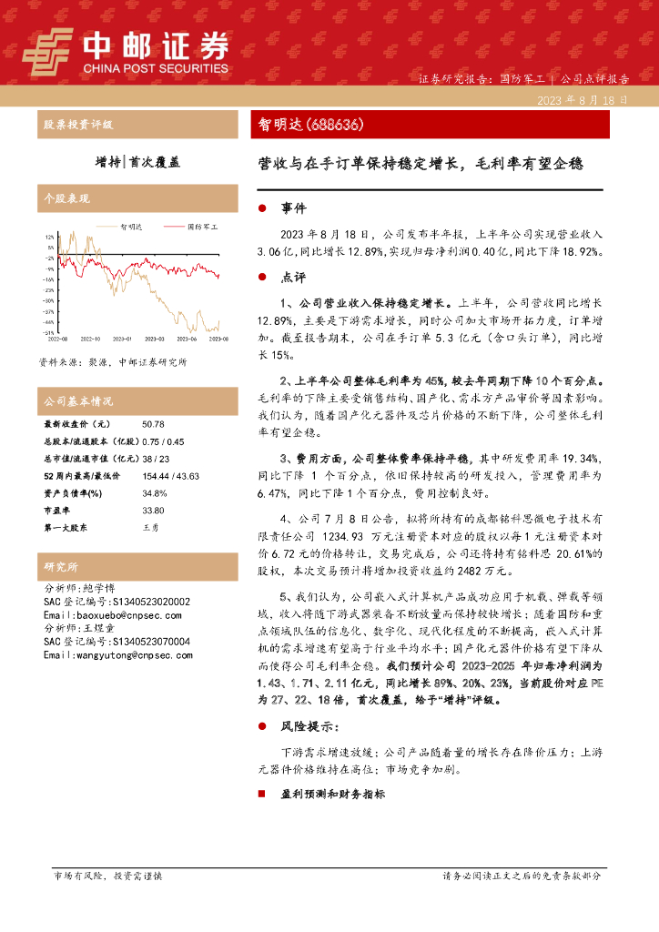中邮证券:智明达(688636)-营收与在手订单保持稳定增长,毛利率有望企稳.pdf