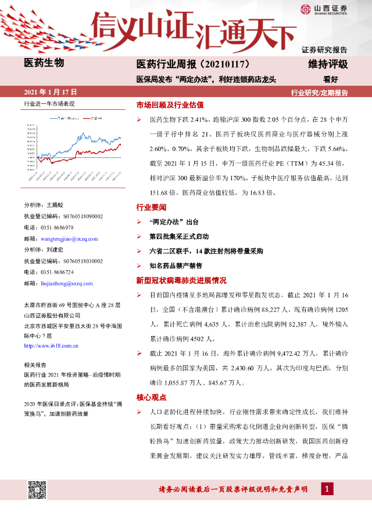 山西证券:医药行业周报:医保局发布“两定办法”,利好连锁药店龙头.pdf