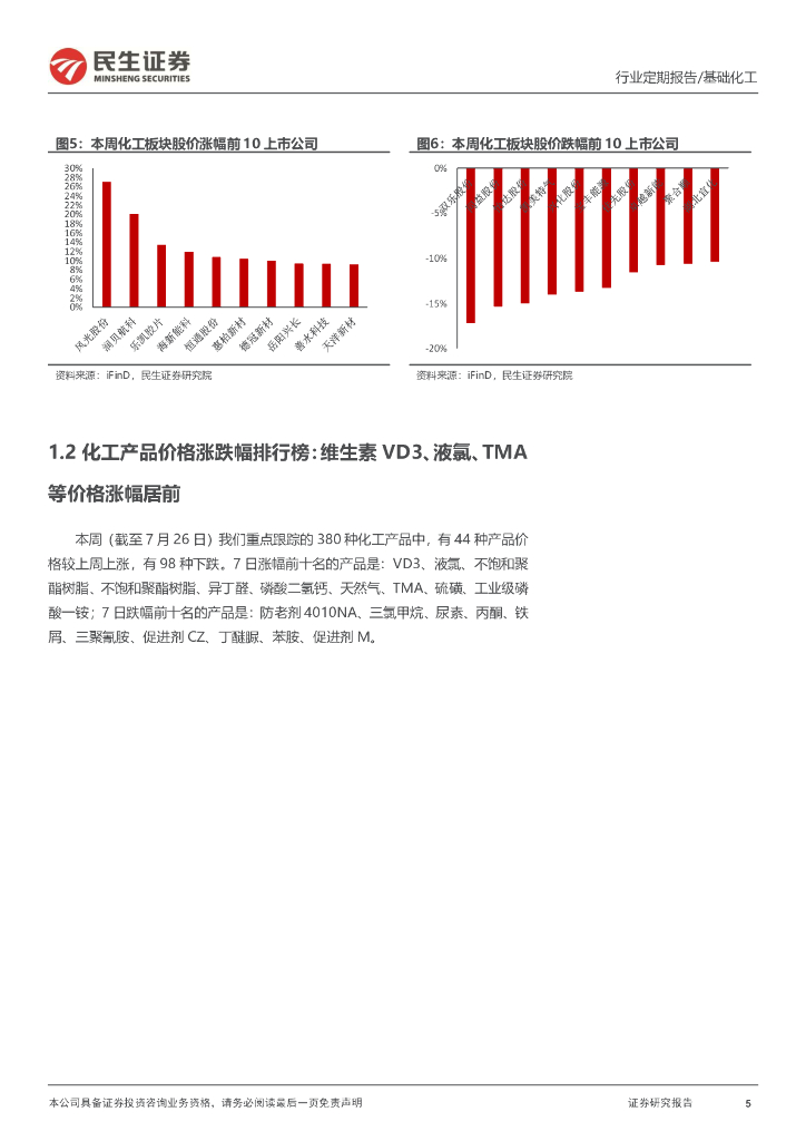 民生证券:化工行业周报(-):本周VD3、液氯、TMA等价格涨幅居前,关注淡季提价子行业涤纶长丝.pdf