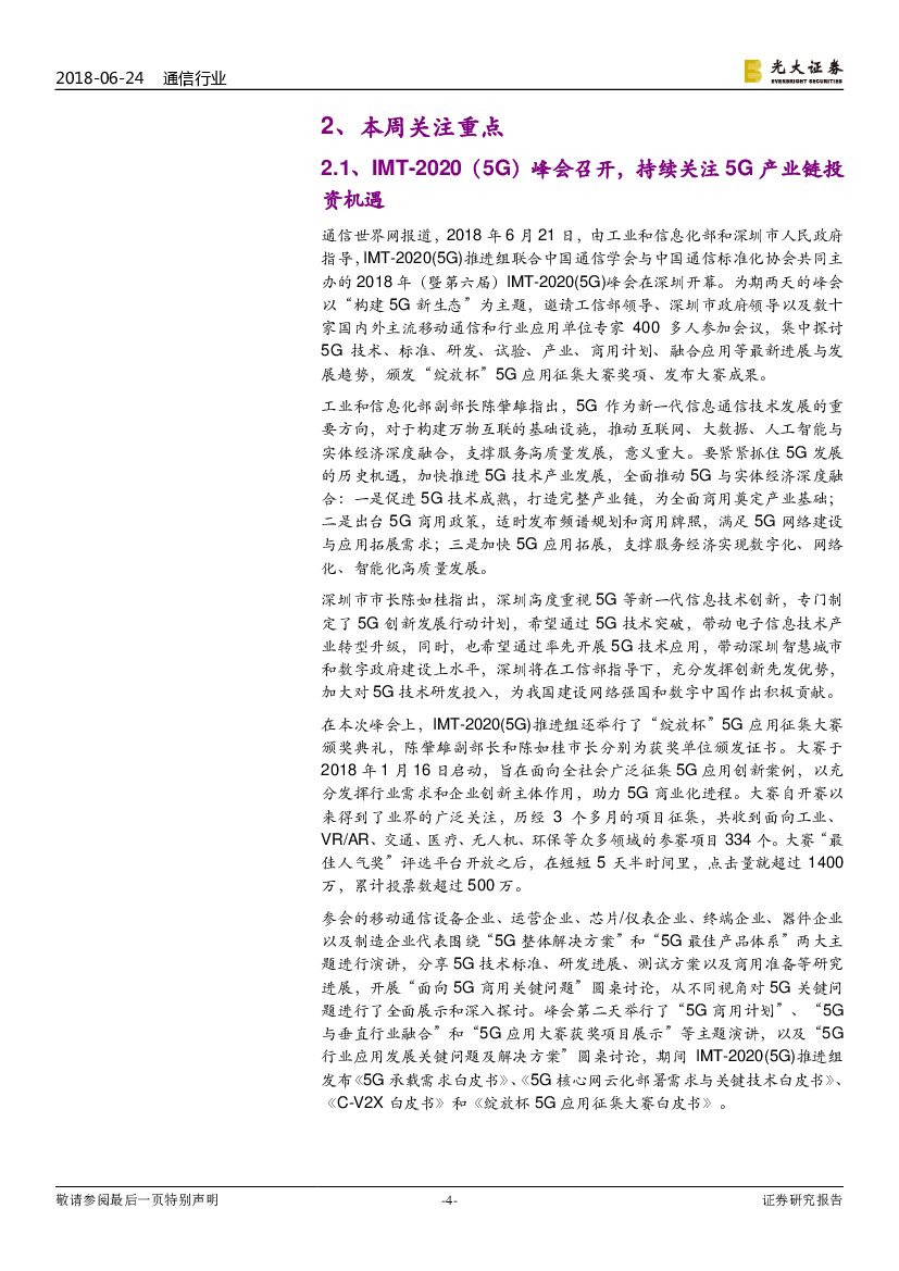 光大证券:通信行业2018年第26周周报:IMT-2020峰会聚焦5G,重申看好通信板块投资机遇.pdf